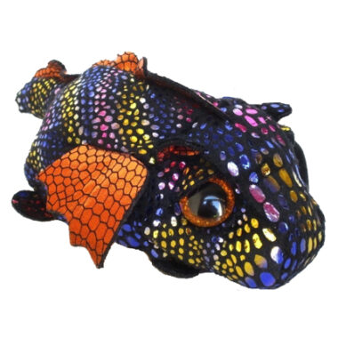 Chaser II is a black dragon covered in shiny, multi-coloured scales. He has glittery orange button eyes and shiny orange wings covered in a black scale pattern. He has a ridge running along his spine made from the same material as his wings.