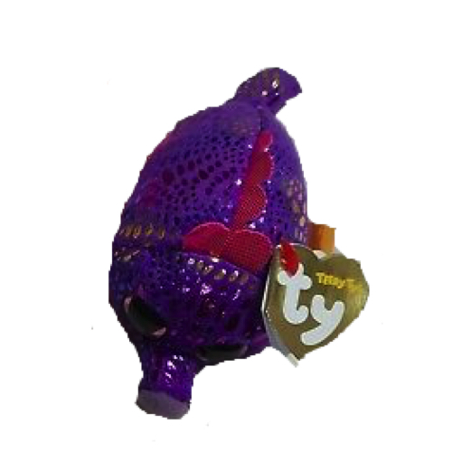 Chaser XIII is a purple seahorse covered in shiny, multi-coloured scales. She has glittery purple button eyes, a purple nose and a sparkly pink ridge running along her spine.