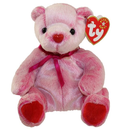 Peachy has a slightly different swing tag from the Beanie Babies range. Her swing tag is a 4th generation Ty Classic tag, which is the same red colour as Beanie Baby swing tags and still features the white “Ty” logo, but features the word “Classic” in gold foil to the upper right of the tag.